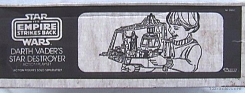 This is where Lord Vader communicates with the Dark Side of the Force. Activate the Force Light in the meditation chamber and Darth strenghtens his dark powers. Chamber opens and closes. He commands from a swiveling command podium. There’s a movable laser cannon, a simulated hologram unit to communicate with the Grand Emperor. Push-button escape hatch. Detention pegs to hang any captured rebels upside down, a control room, an assembly area for Bounty Hunters. Plastic. 9x14x12 in. high. Uses 2 “C” batteries. Figures shown not included–see (12) to (16) on opposite page. For ages 4 years and up.